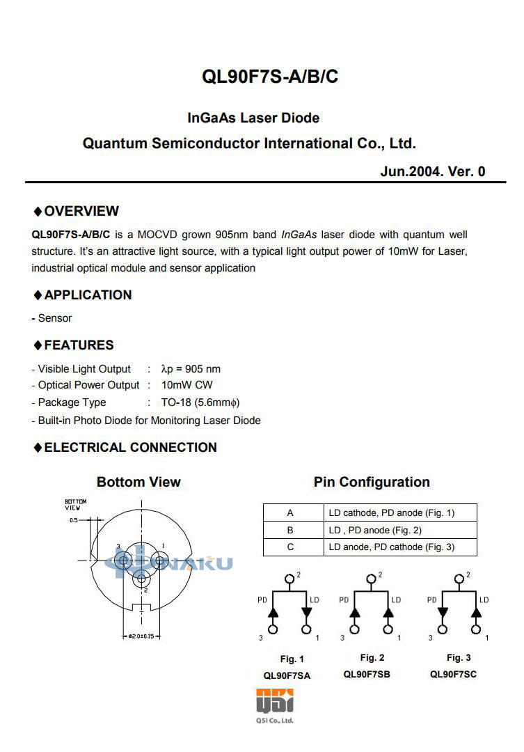 QSI 激光二极管 905nm 10mW 红外激光模组二极管 QL90F7S TO-18 5.6mm